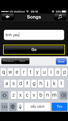 Nhập tên bài hát vào, có thể gõ Tiếng Việt không cần dấu, xong nhấn Go